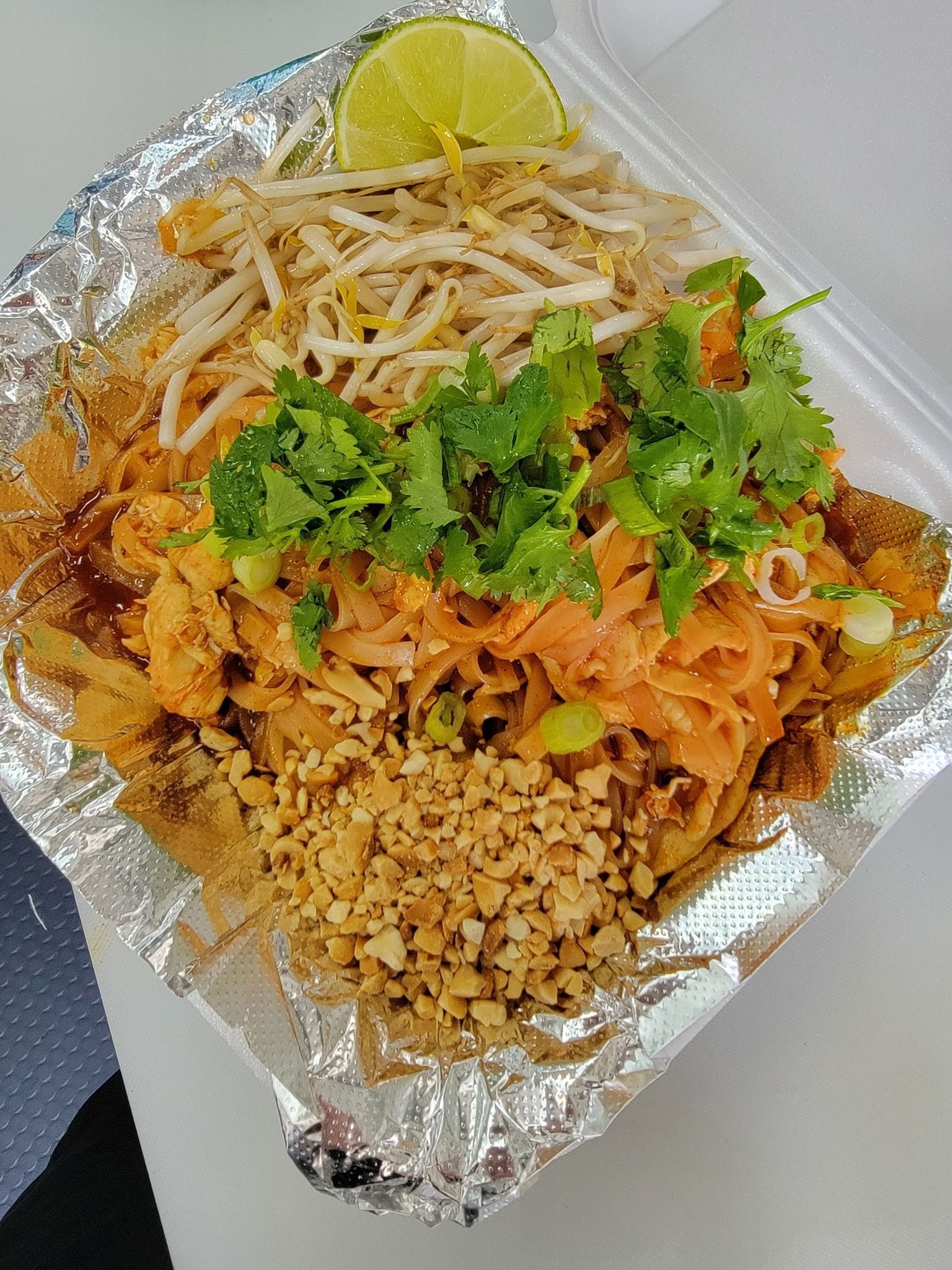 Medium rice noodles stir-fried in a nicely balanced sweet,